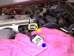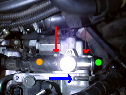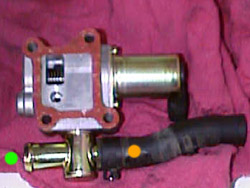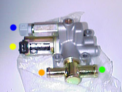 Background: The dealer had already isolated my erratic idling (750-1800rpm whenwarm), so instead of paying the two hours labor for the dealer to replacemy IAA unit, I decided to try my luck and found out it wasn't as hard asI thought. The IAA is made up of the IACV-AAC (Idle Air Control Valve -Auxiliary Air Control) valve, the idle adjust screw, and the IACV-FICDsolenoid. Fortunately you don't have to remember all this because it comesin one unit. The IAA controls idle and compensates for cold engine startsand pressure changes. Work was performed on (& corresponding part numbersare for) a 1993 Twin Turbo.Timing: As required. When idling becomes erratic and can no longer be adjustedusing the idle adjusting screw. Parts: AAC Valve Assembly. P/N: 23781-40P10 (~$215 from Courtesy) AAC Gasket. P/N: 23785-40F00 (~$1 from Courtesy) Blanket or towel to protect the front quarter-panel from scratches Zip ties Installation: 1. Look at the new AAC valve assembly (1.). There are 9 featuresyou need to familiarize yourself with. The two hose attachments, the twoelectrical connections, the four bolt through holes, and idle adjustingscrew. 2. Open the hood and drape a blanket or towel over the driver's sidequarter-panel to prevent scratches to the paint. The Idle Air Adjusting(IAA) Unit is located on the driver's side just behind the manifold andjust inboard of the master brake cylinder (2.). The idle adjustscrew is most easily visible. 3. Start removing air hoses one at a time to gain access to the IAAunit. You may need to unplug the plug wire going to the back cylinder andthere is a ground bolt that may need to be undone to ease access. Onceyou get down the unit, remove the short hose between the IAA unit and thetube between the master brake cylinder and the manifold (3.). Zipties may be useful to hold hoses and wires back out of the way. 4. Reach down and unplug the two electrical connections attached tothe IACV-AAC valve (black male connector, yellow female connector) andthe solenoid (light blue connectors). These connectors have wire retentionclips which do not need to be removed. A little bit and patience and gentleprying with a screwdriver will get these out eventually. 5. Once the electrical connections are removed, all that's left is onehose and 4 bolts. The red arrows (4.) show the two top bolts thatare easy to get to with a 3/8" socket wrench with a 10mm socket. Thereare two other bolts below that require a little more coercing to get out.You may need to change to a smaller 1/4" socket wrench also with a 10mmsocket. 6. The blue arrow (4.) is a tube that needs be ben back towardsthe driver's side once the top bolts are removed. I had no issues bendingthis, just be gentle. 7. Once all bolts are removed, pull the unit out and the last hose shouldwork itself free. 8. Take the old part and compare it against the new part (5.).There should be no physical difference. 9. Pull out the new gasket and apply a light coat of grease to bothsides. This will allow it to adhere to the IAA unit during installation(6.). Put the gasket on the IAA unit and attach the short straighthose to the unit. 10. Before reinstallation, take an opportunity to clean the solenoidand the IACV-AAC connectors (7.). I use WD40 and a small paintbrush.Make sure the connectors are completely dry before reattached. 11. Reassemble in reverse order. Put all four bolts in fingertight beforeusing a socket wrench to tighten them. Make sure that the gasket is stillaligned during installation. 12. Once all hoses, wires, and bolts are back in place, remove all ragsand tools from the engine bay. Start the car and let it get warm (a shortdrive perhaps). Upon return, open the hood and turn the idle adjustingscrew counterclockwise to increase idle, clockwise to reduce idle. Z'swith manual transmissions (TT or NA) should idle at 700 +/- 50 rpm. Automaticsshould idle 50-70 rpm higher when put in neutral. The engine will tendto idle no lower that 700 rpm, so I would suggest turning the screw counterclockwiseuntil the rpms just slight start to rise. Steven(Phx) |