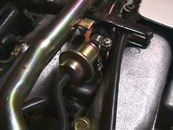 | If the smell of fuel comes from the air vents it's probablyoriginating from the fuel damper, fuel pressure regulator or loose interconnectinghoses. Other parts could be at fault such as the fuel filter connectionsor fuel injectors. Disclaimer: This is a combination of my experience and what I've read from the servicemanual. I am not a mechanic, don't come running to me if your 300 turnsinto a barbecue. Observe all standard safety practices for dealing withgasoline (flammable) in this type of environment. Timing: Fuel smells will usually start during colder weather, since the partscontract even more in the cold air during a thermal cycle. Hose clampsoften work loose. When a fuel smell is noticed inside the car, examineit ASAP, there is an EXTREME DANGER of a carfire starting. This is no way to loose a perfectly good car. Parts: I ordered the hoses from Courtesy Nissan. To replace all the connectingrubber hoses to/from the damper and regulator you will need about 12 inchesof fuel line, I ordered 15. Check exact amounts before you order. (alwaysre-check the part numbers, I'm a UK driver!) 1. Fuel regulator assembly (part 2267010Y00, approx. $50) 2. Fuel damper assembly (part 2267510Y00, approx. $50) 3. High pressure fuel hose 15 inches (part 8959080, approx. $15) 4. Protected fuel hose (part 1644030P11, approx. $40) The fuel pressure regulator (1.) keeps the pressure in the fuelsystem (including the fuel tank) at 43.4psi., so the cylinders can getenough fuel when throttle is applied. It takes some of the pressure builtup in the manifold to increase the fuel pressure. The fuel damper (2.) fits between the fuel filter and injectors.It reduces the pulsation caused by the fuel pump, which is back in thefuel tank. Procedure: 1. Check the fuel hose clamps from the devices indicated in the pictures,making sure they are tight. 2. Look for visual signs of discoloration around the fuel damper andregulator on the hoses. 3. Try putting just a little talcum powder around the hose whereit connects to the devices. Check after starting from cold and warmingthe car up to see if it looks damp. If so, that's the faulty part. 4. If a part is found or suspected to be faulty, replace the connectinghoses as well. 5. The 'protected' fuel hose (2.) exiting the fuel damper (tothe right) is a special part, it doesn't come from a roll of hose. Notes: 1. Always use Nissan 300zx high-pressure fuel hose, anything else couldbe very dangerous. 2. Always relieve the fuel pressure when working with these parts. Theprocedure is illustrated on www.TTZD.com. 3. Always expect some fuel to spurt out when you disconnect a part,even after relieving fuel pressure. Jez |