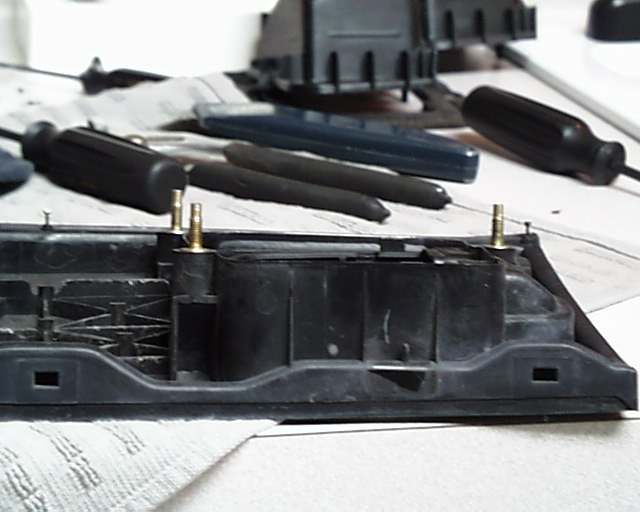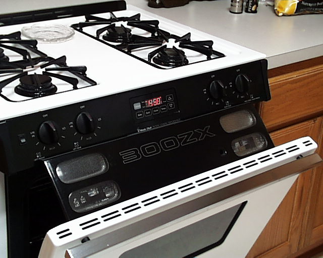 | Let me start off by saying this is a time consuming anddelicate project. If you don't have patience or the understanding/approvalof your significant other to use their kitchen, don't try this. Pay someoneto do it for you. I broke two panels before I got this right and spenta lot of time that I could have used to do other things. For those of youthat don't like the EL panels, this how-to can also be used to paint your300ZX logo to match your custom paint, same amount of work, just cheapersince you don't have to buy the EL panel. The reason I recommend Jspec is that the black paint on the OEM panelsis not thick enough and the EL panel shines through, the Jspec has a thickenough coat you don't need to mess with it. Parts/Tools: 1 rear center panel (jspec preferred) 1 3" by 11" EL panel from www.beingseen.com(tell him I sent you please!) 2 feet of 1/2 foam weather-stripping Electrical tape The finest sandpaper possible, I used some from my body shop used forwet sanding Black primer spray paint (only if using the OEM panel and not Jspec) CAUTION: Some paints may cause bubbling and lifting. Plasticote has been used successfully without causingany problems. Standard oven with temperature gauge Procedure: 1. Take off the snap retainer, foam gaskets, and light housings by removingthe two screws (3.). 2. Preheat the oven to 400 degrees (clearing taillights calls for 450,but the lenses in the reverse lights are a bit thinner and start to meltat 450). 3. Take a sharp knife and cut around the four screws in the rear topof the panel (4.-6.). They might be covered by plastic andthey have no heads on them. Use small pliers and unscrew them. Do thiswhile the oven is heating up. If they are not removed, there is a riskof cracking the center panel. 4. Place the center panel between the open oven door and the top ofthe oven (7.) for 8 minutes. Then remove the panel and slowly startpulling the two pieces apart. Be very careful, it doesn't take much forceto crack the panel, it isn't near as sturdy as the tail light panels. 5. Once the panel is separated turn off the oven and let the piecescool down. If using the OEM panel, tape off the reverse lights and painta good coat of black primer over the 300ZX logo before sanding. I usedgray on an old panel here for pictures (8.), there is a coat ofblack under it. For those with Jspecs, skip the primer step. Also noteregular enamel paint can react with the factory paint on the panel andwill bubble up. If this happens remove all paint and repaint the entirepanel, doesn't sound fun does it? I found this out on an already brokenpanel so it wasn't that big of a deal after I tested with standard enamelpaint. 6. Tape off around the 300ZX logo as close as possible with electricaltape (9.). I recommend at least 1-2 inches away from the letters,because after an hour or so there will be a slip with the sandpaper. 7. Now the hard part, I cut my sandpaper into 1/2 inch strips and startedsanding away the paint on the 300ZX logo. I tried a dremel and it meltedthe plastic even on low setting. I also tried a small 1/4 piece of woodwith the sandpaper on it. The wood doesn't work as well since the panelis curved. So I ended up just using my finger and the strips of sandpaper.I sanded the entire logo with just one sheet, so there's no need to buya whole package. If when holding the panel up to the light there is anylight through anything other than the logo, use black touch up paint orelectrical tape to cover these areas. 8. Once all the paint is sanded off and it looks satisfactory (picka background color for a computer's desktop and hold the panel up to themonitor to see if all the paint is off). Start on the EL panel. I pickedthe Ice Blue and the Blood Red for my testing here. Be warned the BloodRed looks very very very orange when not lit, the Ice Blue is white whennot powered and sort of an Indiglo color when powered. For this reasonI went with Ice Blue instead of the Blood Red. The EL panels consist oftwo individual panels, one positive, one negative. I was told the lengthcan be modified as long as both panels are the same size overall. Theycan also go as much as 25% difference without being able to see any fading.This is good because the keyhole will need to be cut around (10.).Just make sure to tape the panel after cutting, otherwise there is a riskof being shocked. There is power running through these things. 9. Once the panel is cut and fitted, use strips of electrical tape tohold the EL panel to the logo. Since the panel is curved I also put twostrips of foam weather-stripping on the back of the EL panel to make sureit stayed flat against the logo when put back together. My EL panel isstuck to the back side of the plastic panel and not the logo. This happenedbecause I painted the chrome inside the back piece of my Jspecs to giveit a darker look and the foam weather-stripping stuck to the paint. Forgood fitment/placement I would tape to the logo first. 10. Drill a hole in the back plastic piece to run the power wires (11.).At this point start heating the oven up to 400 degrees again. Put the twopieces of the center panel back together as best as possible without heatingthem up, then put them back on the oven door. This time around I heatedthe pieces for 3 minutes and then used my handy clamps to squeeze the twoends together. I then let it cook for another 3 minutes before removingfrom the oven and squeezing the rest back together (12.). Dependingon how well it came apart it might take several trips of cooking/coolingbefore the panel is all the way together. Don't get in a hurry here asa poorly sealed panel will let water in. No telling how that EL panel willreact to moisture. 11. Once the panel is back together and cooled off reinstall on theZ. I wired my inverter to my license plate light. The main reason I didthis instead of parking lights is that there are sensors for bulbs to tellif there is a bulb out. By using the license plate light there is no chanceof triggering thi
