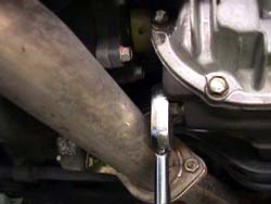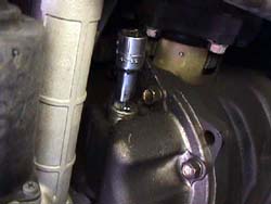 | A basic part of the 30K & 60K maintenancepackages is to inspect the fluid level in both the transmission and inthe differential. A lot of people go ahead and replace the fluids witha 'performance' lubricant like Redline during the upgrade path to helpmake shifting smoother. I've never done an automatic, but I'm sure it'sclose to the same procedure. I outline the auto transmissions procedureat the end of the page. This procedure is done on a '94 5spd TT. Special Tools: 1/2" drive socket wrench (torque wrench) 1/2" drive 1.5" extension Parts needed: Teflon plumbing tape (not manditory, but nice to use) Differential fluid (these are '95 specs, e-mailif you find different) NA: 1.3L or 2 & 3/4pts. of 75W-90 TT: 1.8L or 3 & 7/8pts. of 75W-90 Transmission fluid NA & TT 5spd: 2.8L or 5 & 7/8pts. of 75W-90 (or Redline MT-90)* NA auto: 8.3L or 8 & 3/4qts. of ATF TT auto: 8.2L or 8 & 5/8qts. of ATF * some people run Redline MTL instead, the MT-90 is thicker and has shown to be better for the syncros. Procedure: 1. Jack up the car and put it on jack stands. Make sure the Z is levellike it would be on the road. Observe all regular safety precautions. Wearsafety glasses at all times when under the car (I'm NOT kidding). Changing the Differential Fluid: 2. Put oil catch pan under the differential. 3. Remove the fill plug with the 1/2" drive extension and socket wrench(1.). On the TT, it's on the passenger side rear of the differential. On the NA, it's on the driver's side. 4. Carefully remove the drain plug with the 1/2" drive socket wrench(2.). On the TT, it's on the driver's side rear of the differential. On the NA, it's on the bottom. The fluidwill drain into the catch pan. Be very careful, the fluid isn't like motoroil, it's pretty foul smelling & not pleasant to spill on the floor.I wear rubber gloves while working with it in an attempt to stay clean. 5. While the fluid is draining out, clean off the drain plug, it hasa magnet on it to catch all the metal particles (3.). If teflontape is available, wrap a bit of that around it to aid in sealing the plug. 6. Once the fluid is drained, replace the drain plug & torque to29-43 ft-lbs for NAs & 43-72 ft-lbs for TTs. 7. Filling the differential and transmission is a little difficult.Most auto parts stores sell hand pumps to move the fluid up into the diff/tanny.I found this to be a MAJOR hand cramping pain in the butt. I found a cheapand much faster way to do it if an air compressor is available. Get 3'of 3/8" O.D. clear vinyl tubing. Cut it into 2' & 1' pieces. Drilltwo holes in the lid of one of the fluid bottles large enough to cram thetubing through. Make it tight as it's got to maintain some air pressure.Stick the 1' piece an 1" into the lid. Stick the 2' piece 8" into the lid.Put a blower tip in the shorter tube. Put the lid on a full bottle of fluid(4.). Crank down the pressure regulator on the air compressor to30 psi. Then it's all easy. Just stick the longer hose up into the diff/tranny'sfill hole and apply air pressure to the shorter tube. The air pressurewill force the lubricant up the longer hose and into the case. At 30 psi,it'll drain a .9L bottle in 30 seconds or less. WARNING: Do NOT try thisif unable to regulate the air pressure. I promise a Redline bottle under125 psi will not last long and you'll end up with a very oily mess at thevery least. 8. Using whatever means of filling the differential required, push thefluid in until it dribbles back out of the filler hole. When it does this,it's full. Replace the filler plug and torque to 29-43 ft-lbs (both NA& TT). Put the car back on the ground if finished. Changing the Manual Transmission Fluid: 9. Put oil catch pan under the transmission. 10. Remove the fill plug with the 1/2" drive extension and socket wrench(5.). It's on the passenger side rear of the transmission. 11. Carefully remove the drain plug with the 1/2" drive socket wrench(6.). The fluid will drain into the catch pan. Like on the differential,be very careful, the fluid isn't like motor oil, it's pretty foul smelling& not pleasant to spill on the floor. I wear rubber gloves while workingwith it in an attempt to stay clean. 12. While the fluid is draining out, clean off the drain plug, it hasa magnet on it to catch all the metal particles (3.). If teflontape is available, wrap a bit of that around it to aid in sealing the plug. 13. Once the fluid is drained, replace the drain plug & torque to18-25 ft-lbs (both NA & TT). I personally thought this was rather light,so I bumped it up to 35 ft-lbs. 14. Using whatever means of filling the transmission required (see step7.), push the fluid in until it dribbles back out of the filler hole. Whenit does this, it's full. Replace the filler plug and torque to 18-25 ft-lbs(both NA & TT). Put the car back on the ground if finished. Changing the Automatic Transmission Fluid: As I said at the top, I've never done this, but here's the run downfrom the manual: 15. Warm up the car before jacking it up. 16. Drain the fluid from the drain plug. Something like picture 6.butdifferent. The plug should be 14 mm instead of the 1/2" drive version. 17. Clean up the drain plug, I'm guessing it's like the manual transmission's,and replace it. Torque the plug to 22-29 ft-lbs. 18. Refill the transmission. I'm guessing through the fluid level dipstickhole. At least that's how it's done on other cars. As always, the manualis very unspecific. 20. Idle the engine for 5 minutes. 21. Check the fluid level and condition by placing car in 'P' and checkingthe 'hot' level on the dipstick. If fluid is still dirty, repeat steps16-21 (whew, another EIGHT liters... $$$). If fluid is low, add to correctlevel. 22. Put the car back on the ground if finished. Make sure to check thefluid level at the next 'cold' chance. Originally published 8-3-99 |