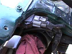 2. Disconnect the MAS sensor's plug, being careful not to loose the small wire clip holding it in place.