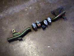 15. Remove the MAS/single POP from the large plastic 'T'. Using the orange rubber hose connections, attach the MAS/single POP to one of the silver elbows, adding the smaller orange fubber hose to the end of it. Tighten all the clamps except the one on the very end. Make a second assembly like the first, but using the dummy MAS in the middle. Remove the rags from the hardpipes. Install both assemblies on the hardpipes (remember my note on the temporarily installed low speed hose going over the top of the MAS side POP 16.). Plug the MAS back in.