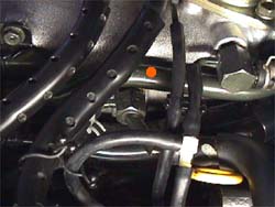 9. Move the clamp on the front rubber hose back on the idle air tube. It's easier to keep the rubber hose on the rear of the tube & disconnect it where it meets the idle air valve on the back of the plenum instead of taking it off the tube. Remove the two plastic clips holding the wire harness in place. Use a straight blade screwdriver to push in the tab & then slide the clip off the brackets on the bottom of the idle air tube. Remove the idle air tube (orange dot 12.).